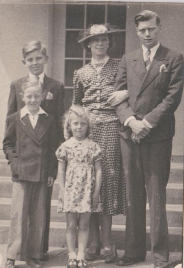 In this cherished photograph, a young Bob Cusworth stands alongside his mother, Elva Danielson Cusworth. This image captures the essence of Bob's early life, filled with the warmth and care of his mother. Elva's nurturing presence laid the foundation for Bob’s journey, highlighting the special bond they shared as he began to navigate the world under her loving guidance.