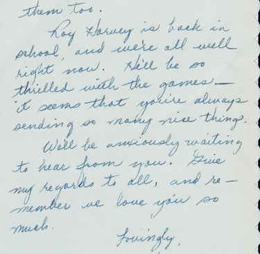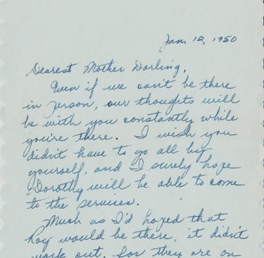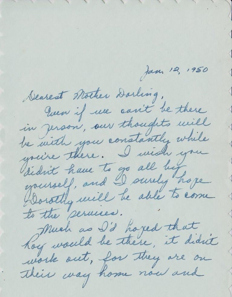 Letters Written to Grandma Katie Webb from Helen Rollo her daughter on the occasion of Grandma going the military funeral for Harvey Webb Jr in 1950
