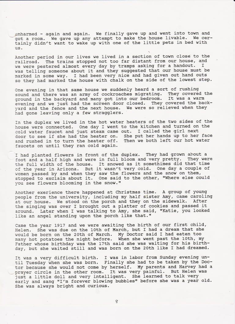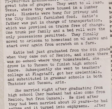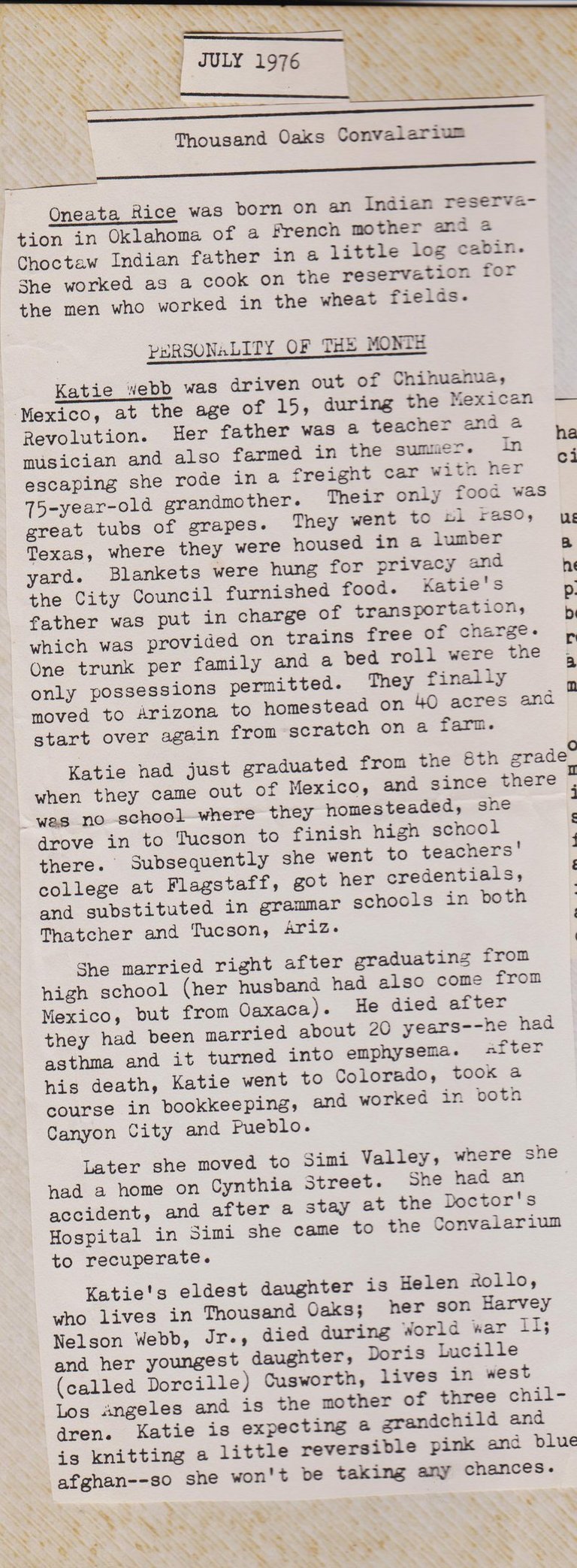 History of Katie Webb composed at the Thousand Oaks Convalarium July 1976