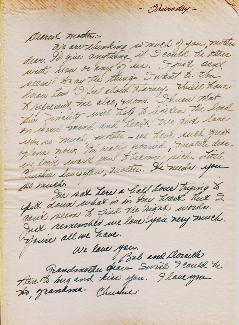 Letters Written to Grandma Katie Webb from Dorcille Cusworth her daughter on the occasion of Grandma going the military funeral for Harvey Webb Jr in 1950